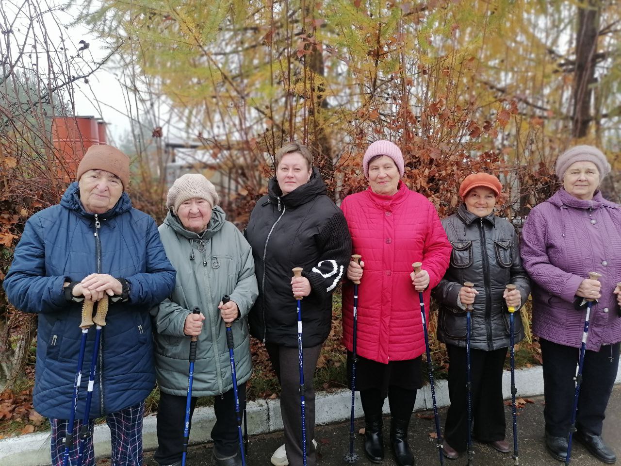 Жители отделения «Специализированный жилой дом для граждан пожилого возраста и инвалидов» ГБУ «КЦСОН Краснобаковского муниципального округа» приняли участие в занятии по скандинавской ходьбе для пожилых с элементами развлекательной игры .
