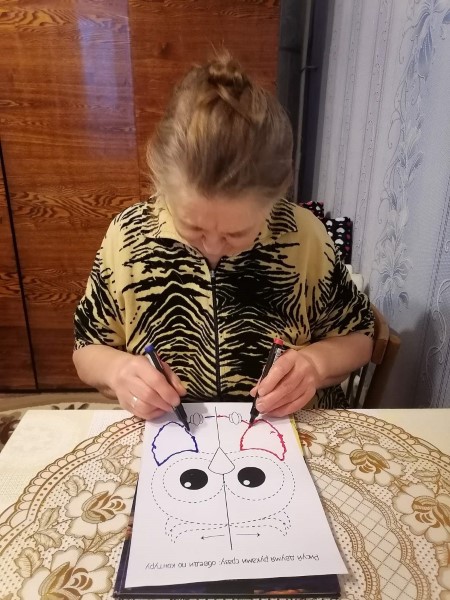 В отделении «Специализированный жилой дом для граждан пожилого возраста и инвалидов» проходят занятия по нейробике в рамках программы «Ключи к здоровью». С большим удовольствием жители «серебряного возраста» выполняют упражнения на синхронное рисование. Взяв в обе руки по карандашу, проживающие одновременно рисуют разные фигуры, что приводит к активизации деятельности мозга.