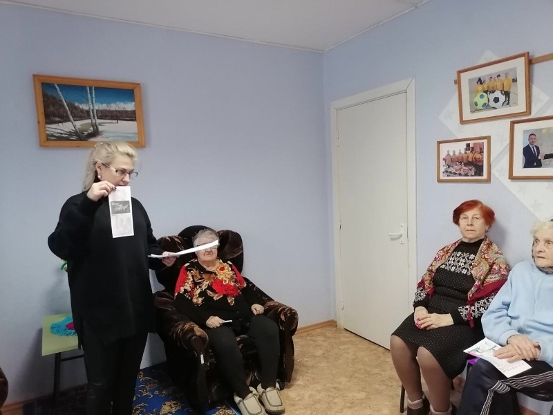 02 февраля для жителей отделения «Специализированный жилой дом для граждан пожилого возраста и инвалидов» заведующая отделением Окунева С.С. провела беседу – знакомство с положением «Карта Победы». Светлана Степановна проинформировала о том, что получателями «Карты Победы» являются: «Дети военного времени» - граждане, родившиеся в период с 1 января 1927 года по 31 декабря 1945 года. Также жильцы познакомились с условиями пользования карты, её преимуществами, как ей пользоваться и где можно получить. Получить «Карту Победы» можно в ГКУ НО «Управление социальной защиты населения» по месту жительства. Дополнительно информацию можно получить по телефону горячей линии 8-800-250-21-52