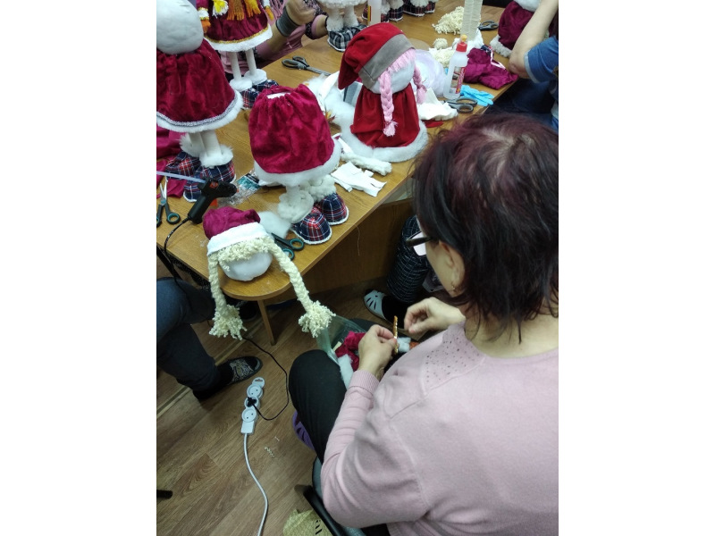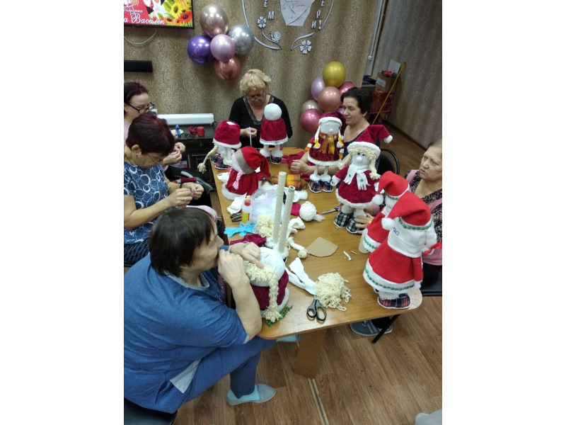 ✂Отдыхающие отделения дневного пребывания на кружке «Волшебный клубочек» изготовили интерьерную куклу снежку🧶
