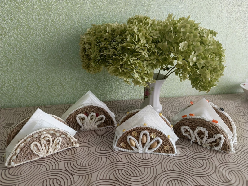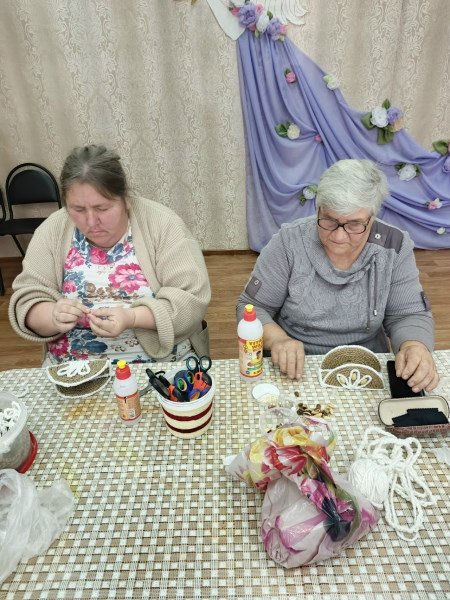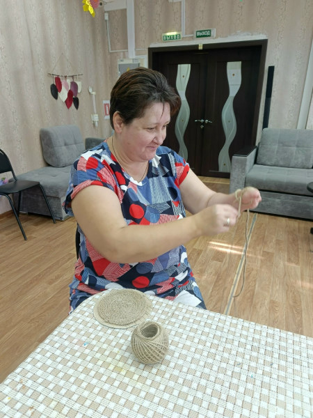 В отделении дневного пребывания отдыхающие своими руками сделали салфетницу из джута.