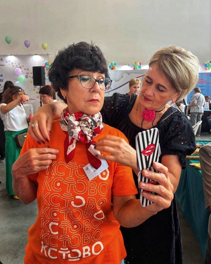Торжественное открытие началось с чествования нижегородских семей-юбиляров. Тех, кто пронёс любовь и верность через десятилетия. Наш Центр с радостью представил «Платочную мастерскую» - пространство, где все желающие могли освоить искусство элегантного завязывания платков. Мастерская пользовалась большим успехом и вызвала настоящий ажиотаж. Гости с интересом учились новым способам, делились воспоминаниями, примеряли образы и с удовольствием делали фото на память. Атмосфера была по-настоящему тёплой, душевной и вдохновляющей.