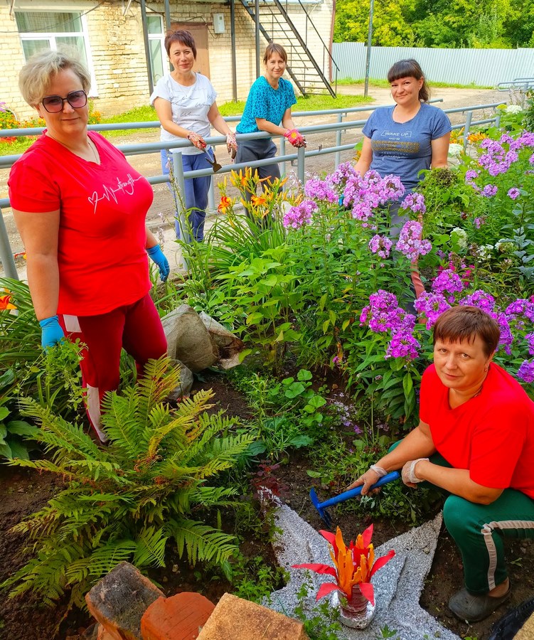 Занялись мы клумбой у здания Центра. За обсуждением текущих рабочих вопросов прорыхлили землю, выпололи сорняки и освежили внешний вид цветника. Простое правило остаётся неизменным: всё, чему уделяешь внимание, обязательно расцветает и радует.
